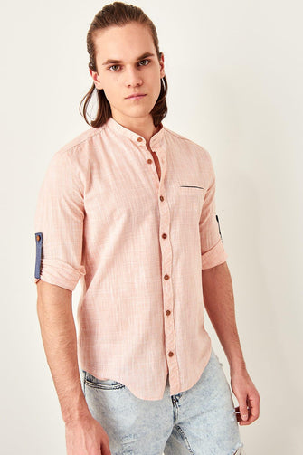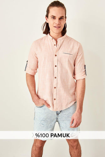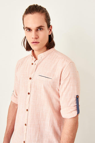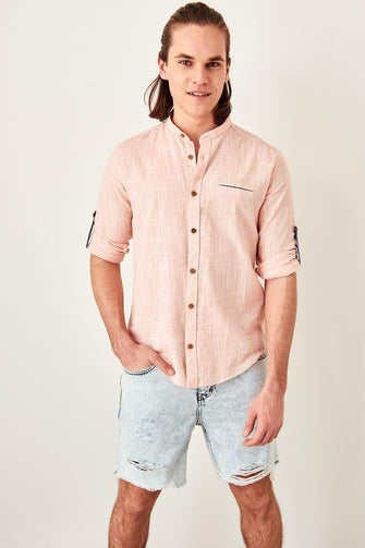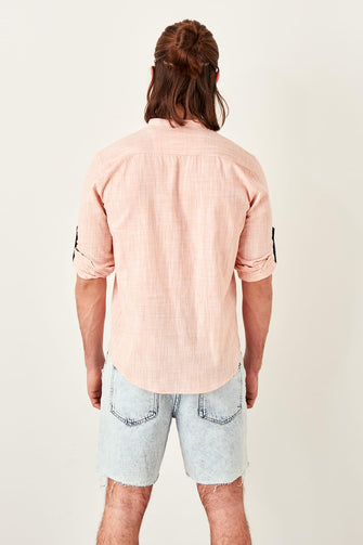 Orange Men 'S Crew Neck Epaulets Slim Fit Shirt