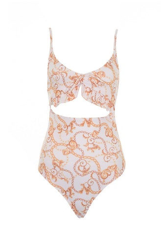 Patterned Ruffle Detail Swimsuit