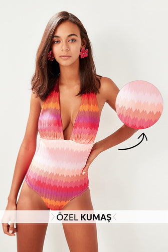 Patterned Textured Halter-neck Swimwear
