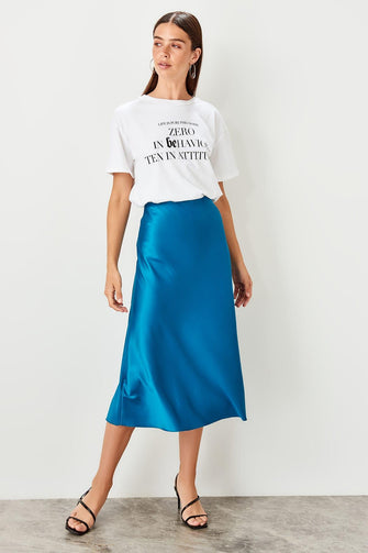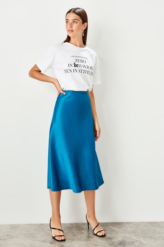 Trendyol Petrol Satin Skirt TOFSS19WX0013