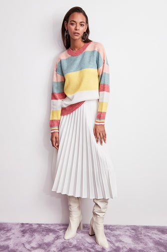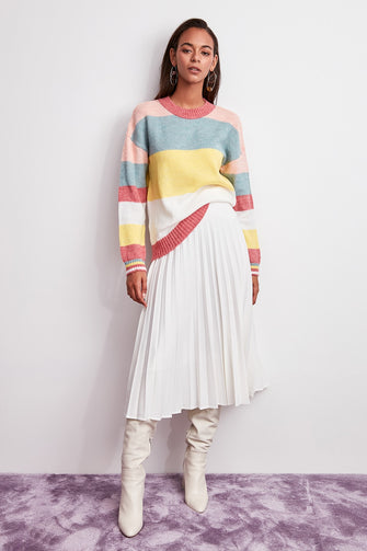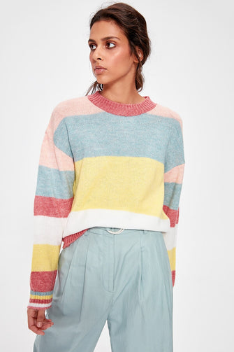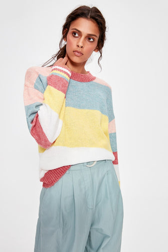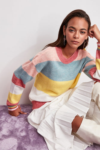 Pink Color Block Sweater Pullover