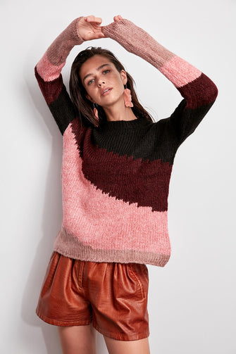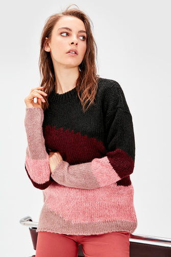 Pink Colorblock Sweater Sweater