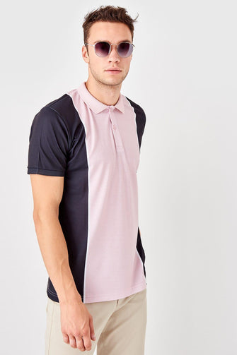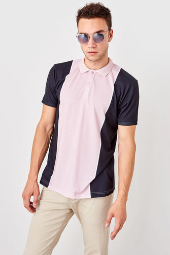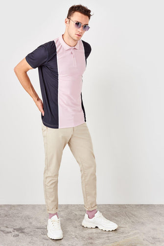 Pink Knitted Vertical Line Polo Neck T Shirt New