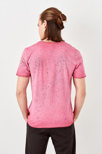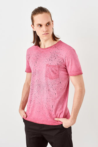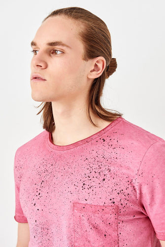 Pink Male Oil-Flushing T-Shirts With Pocket