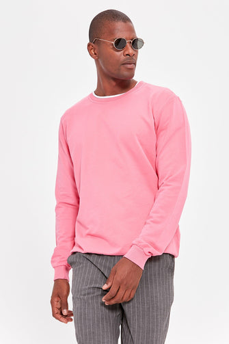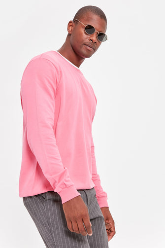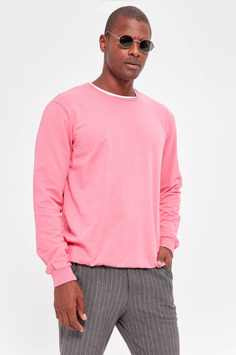 Pink Men 'S Bike Collar Long Sleeve BASIC New Sweatshirt