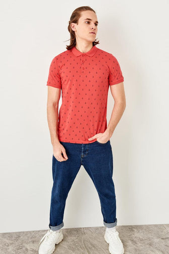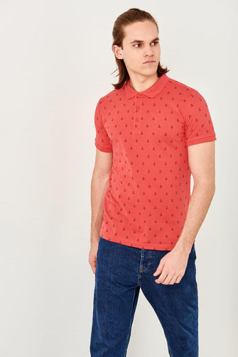 Pomegranate Flower Printed Polo Collar T-Shirt