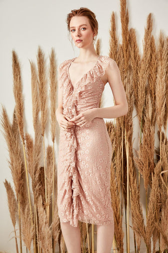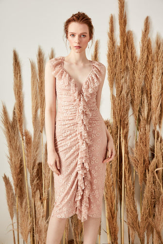 Powder Flywheel Detailed Lace Dress