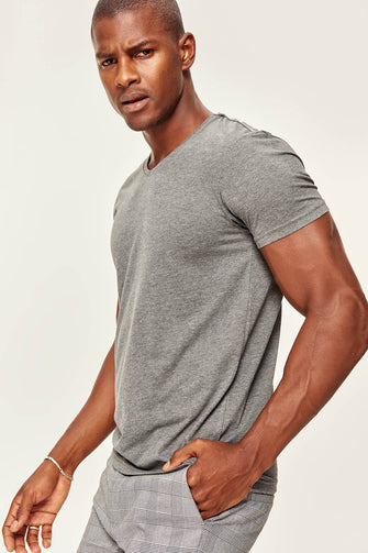 Presser Anthracite Men's Cotton T-Shirt - Slim Fit Short Sleeve V Neck