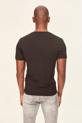 Presser Black Men's Cotton T-Shirt - Slim Fit Short Sleeve V Neck
