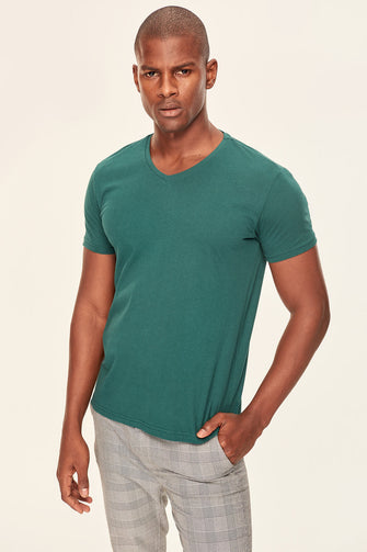 Presser Green Duck Head Men's T-Shirt - V Neck Cotton