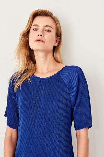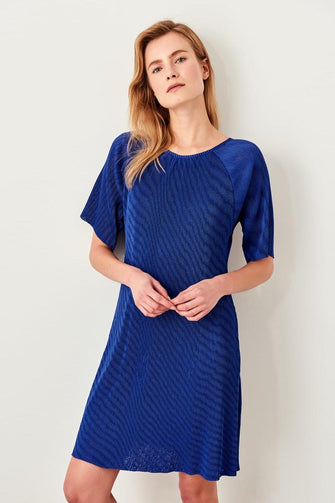 Purple Bat Sleeve Pleated Knitted Dress