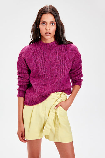 Trendyol Purple Braided Knitwear Sweater TWOAW20KZ0007