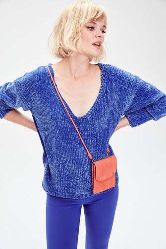 Trendyol Purple Chenille V-Neck Knitwear Sweater TWOAW20FH0003