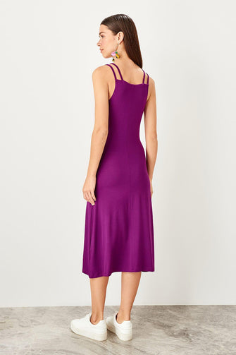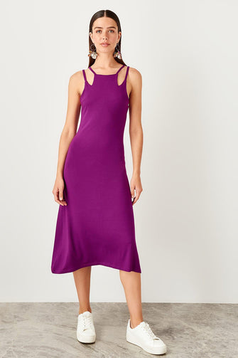 Purple Halter Knitted Dress