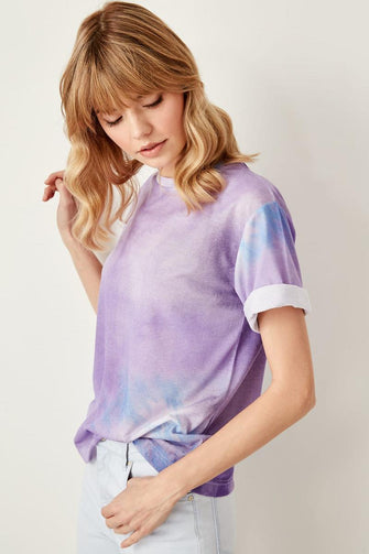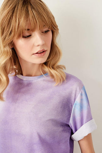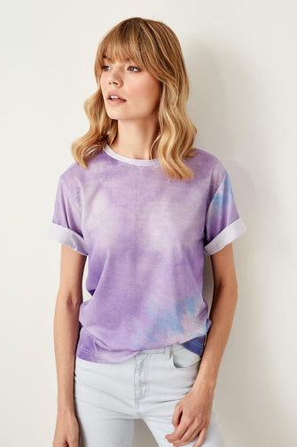 Purple Tie Dye Basic Knitted T-Shirts