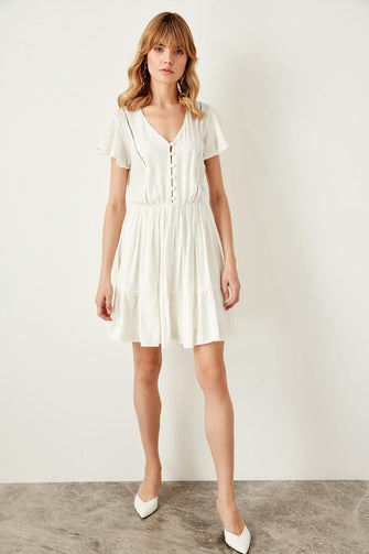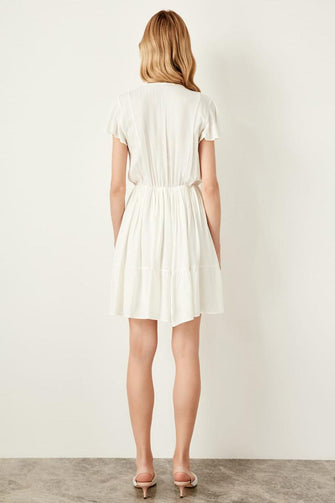 Raw White Short-Sleeve Dress