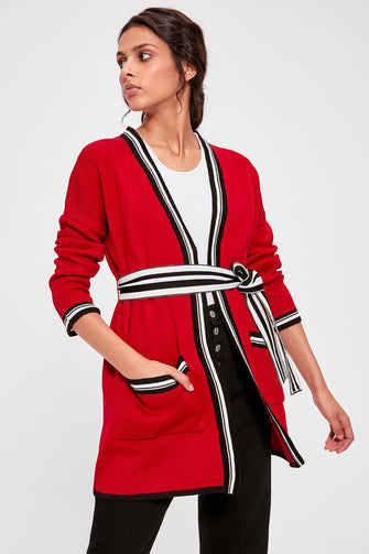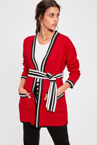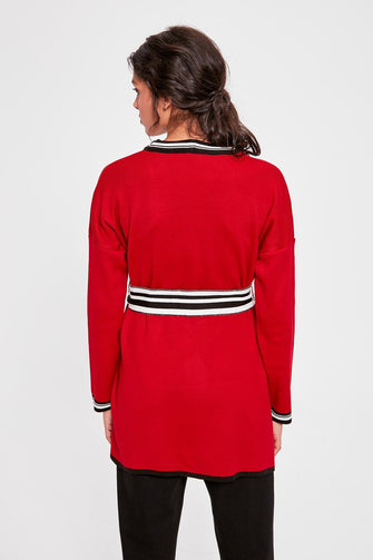 Trendyol Red Belted Sweater Cardigan TWOAW20FV0113