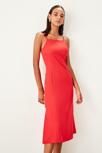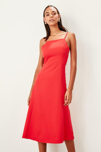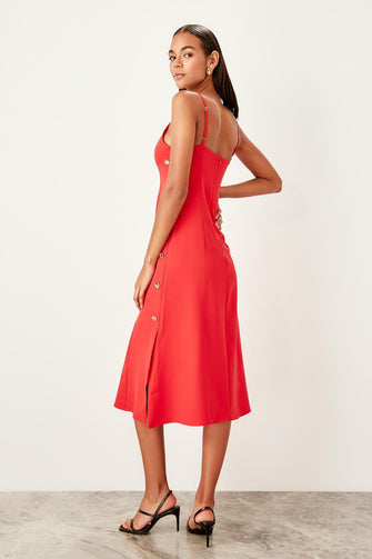 Red Button Detail Dress