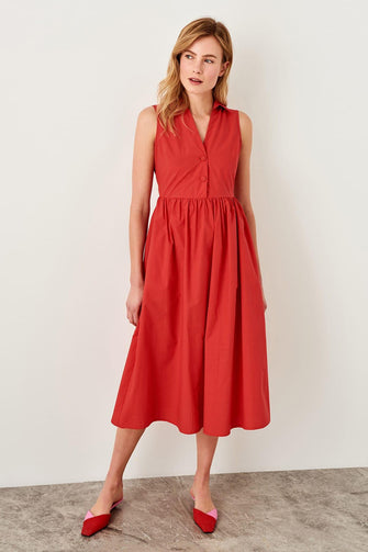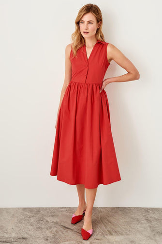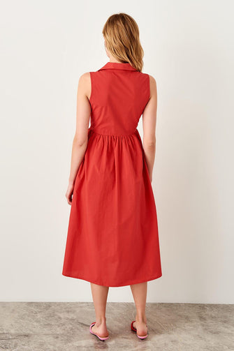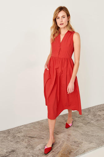 Red Button Detail Dress