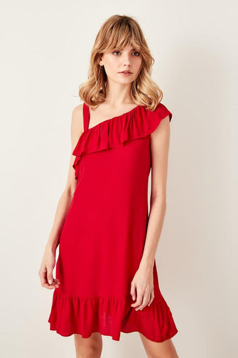 Red Flywheel Detail Dress
