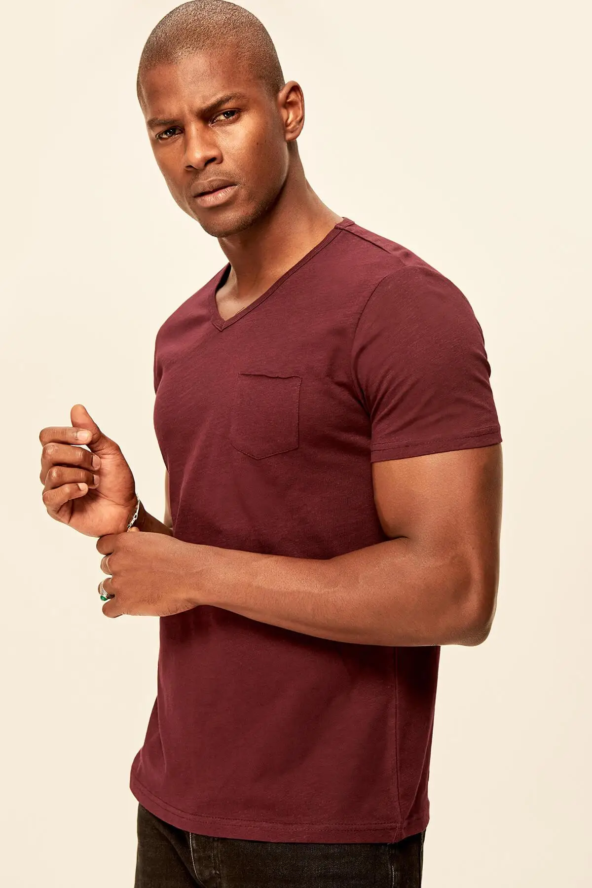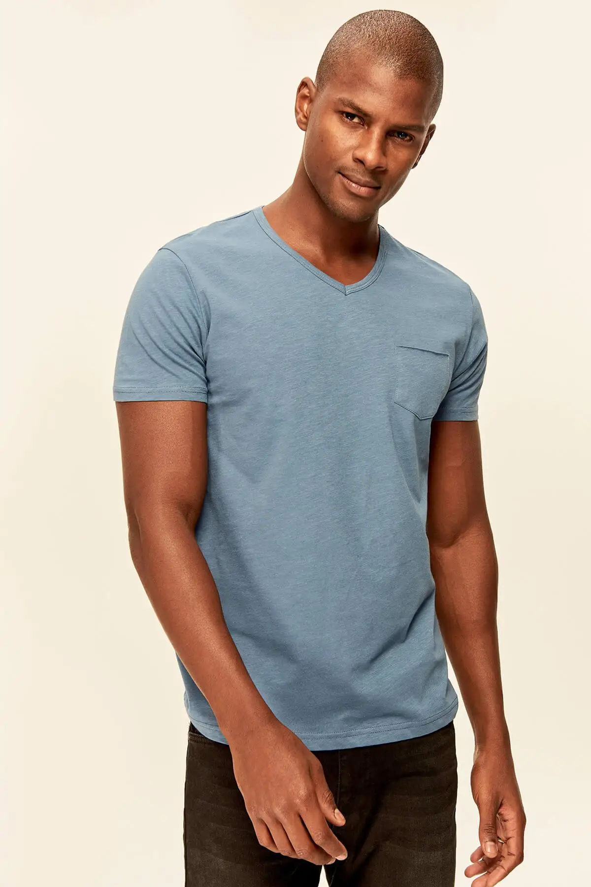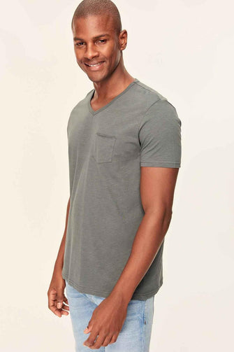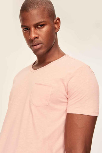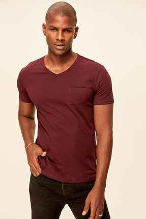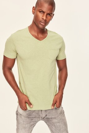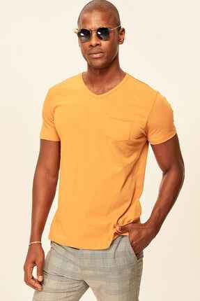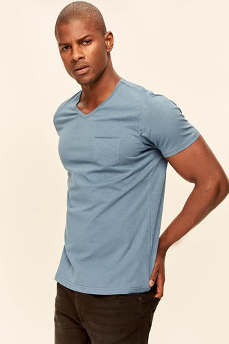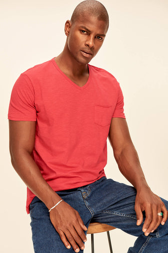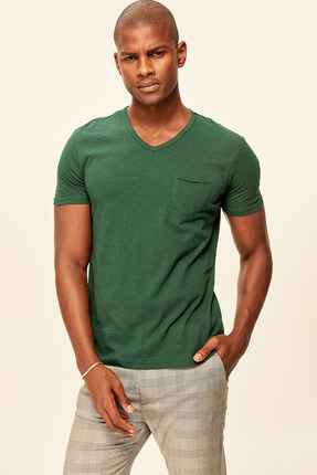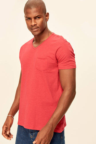 Red Grey White Blue Green Yellow Presser Men's T-Shirt - Slim Fit Short Sleeve V Neck Pocket Detail