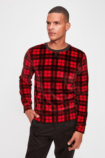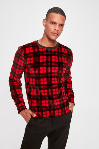 Red Men Cycling Collar Long-Sleeved Velvet New Sweatshirt
