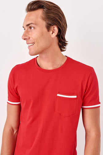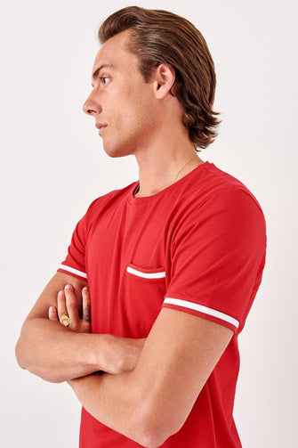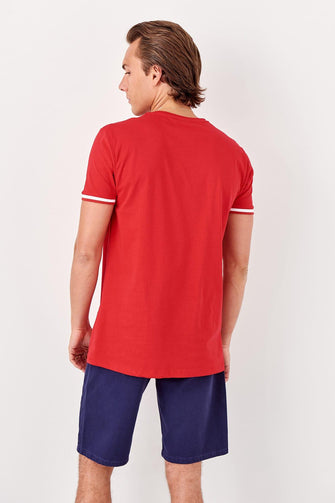 Red Men 'S Short Sleeve Cycling Collar Pockets New T-shirt