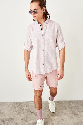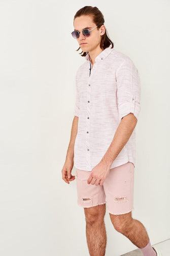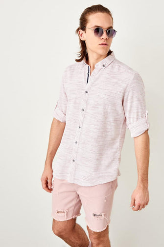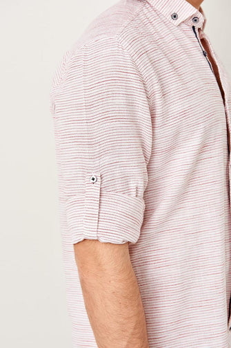 Red Men 'S Striped Epaulets Slim Fit Shirt