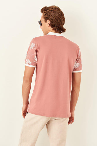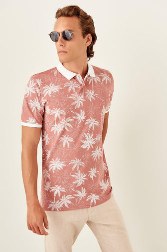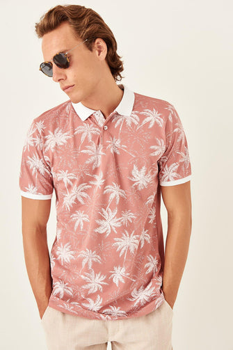 Red Mens Printed Polo Collar Short-Sleeve T-Shirt