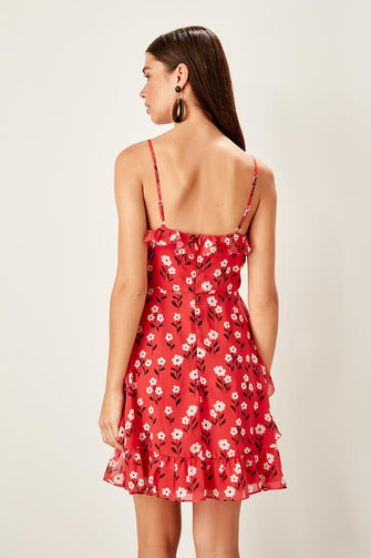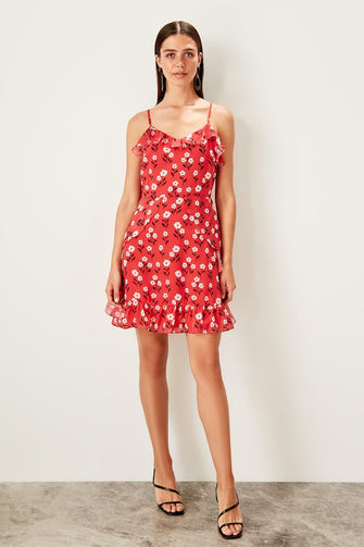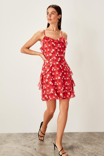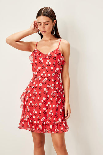 Red Ruffle Detail Dress