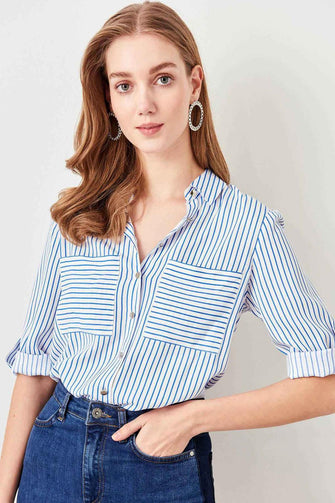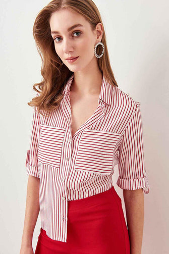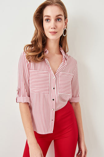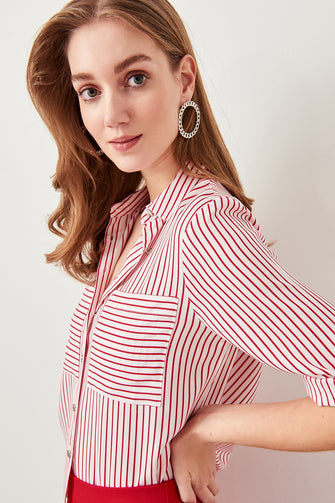 Trendyol Red Striped Shirt TWOSS19ST0058