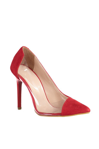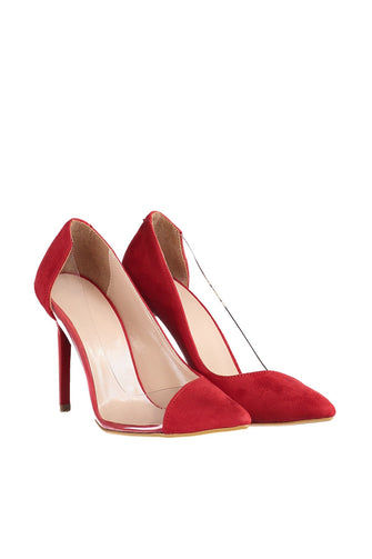 Red Transparent Detailed Suede Women 'S Heels Shoes