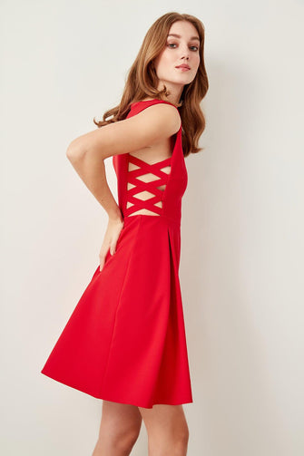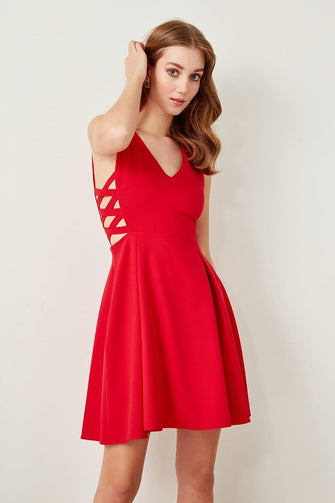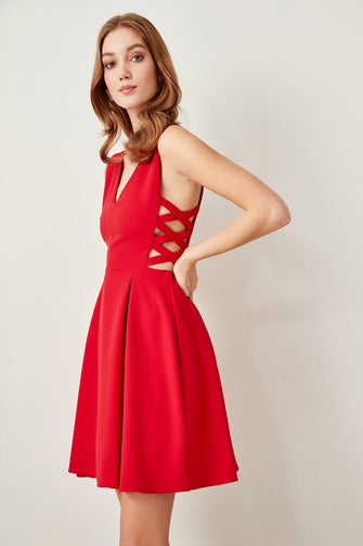 Red Waist Detail Dress