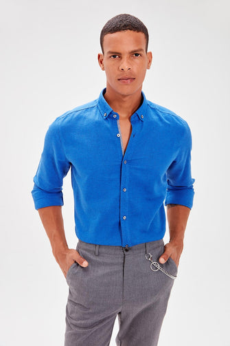 Saks Male Button Collar Cotton Slim Fit New Shirt