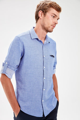 New Men 'S Slim Fit Fleto Pockets Epaulets Shirt New