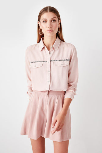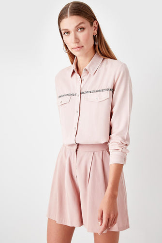 Trendyol Salmon Stone Detailed Denim Shirt TWOAW20GO0114