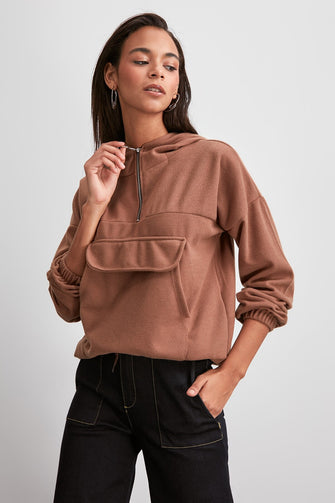 Kangaroo Pockets Knitted Sweatshirt