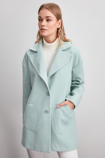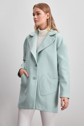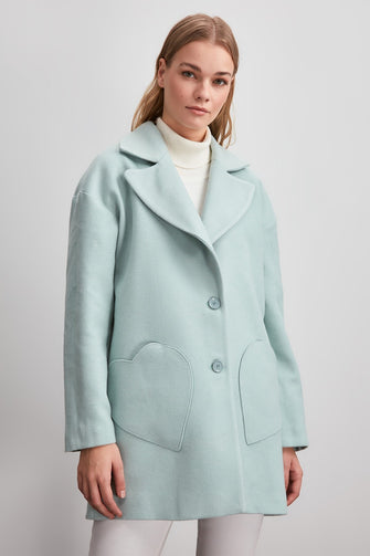 Short Heart Mobile Detailed Woolen Stamp Coat