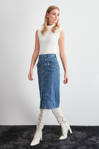 Stitch Detail Denim Skirt
