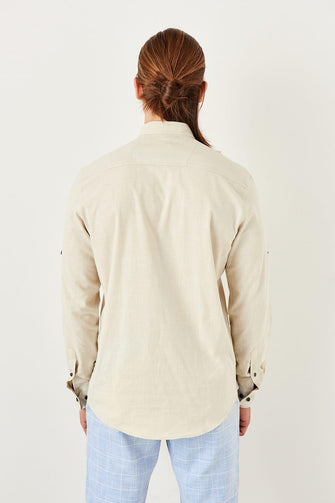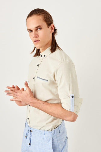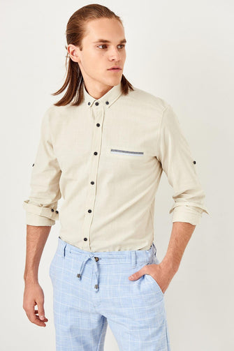 Stone Male Fillet Mobile Epaulets Slim Fit Shirt