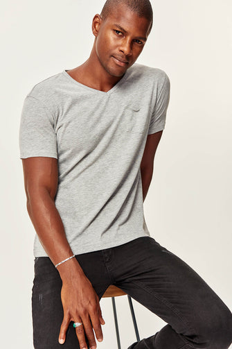 Stone Presser T-Shirt - Slim Fit Short Sleeve V Neck Pocket Detail