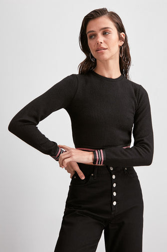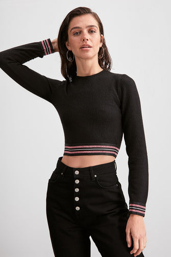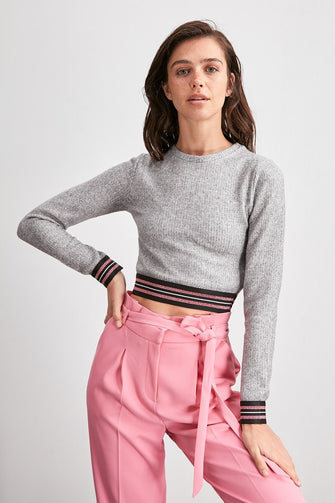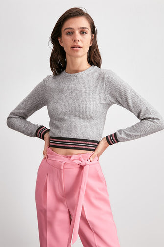 Stripe Crop Knitted Blouse