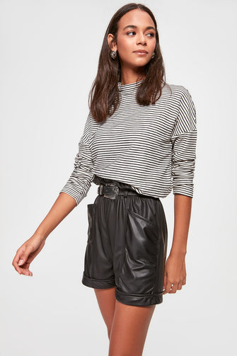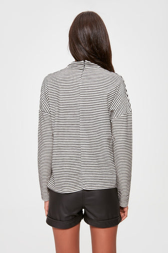 Striped Sheer Neckline Knitted Blouse
