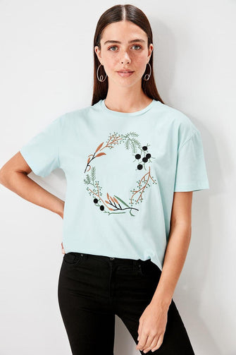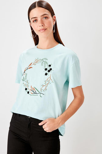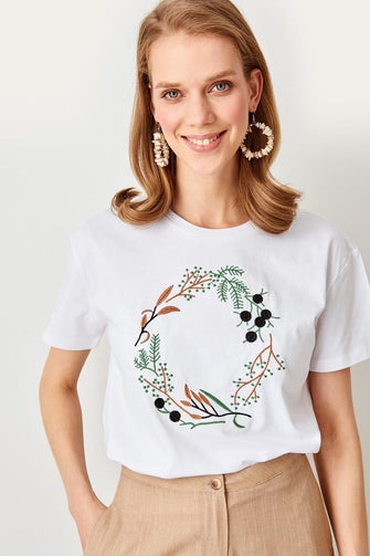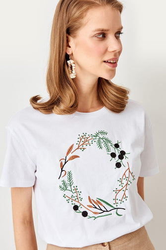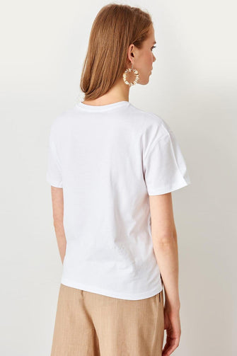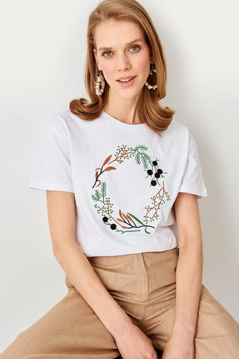 Summer White Embroidered Knitted Streetwear Women Basic Casual T Shirt