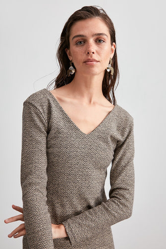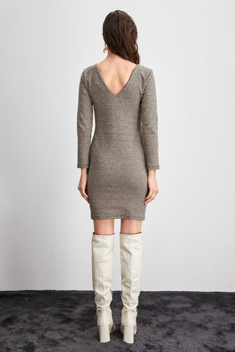 V Collar Knitted Dress