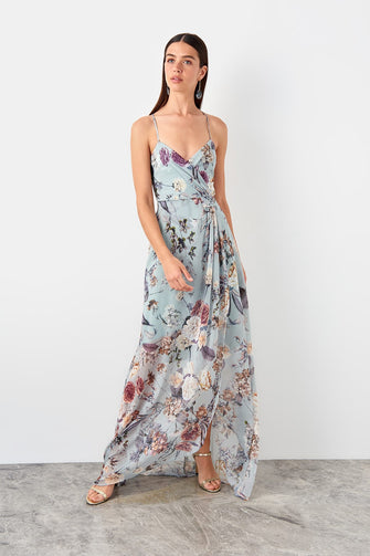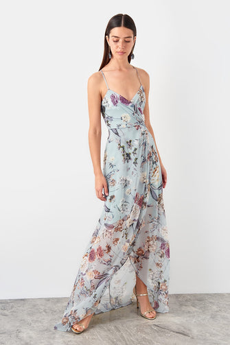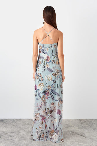 Water Green Back Detailed Evening Dress