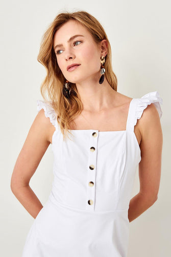 White Button Detail Dress