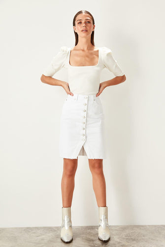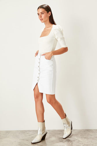 Trendyol White Front Button Denim Skirt TWOSS19LR0260