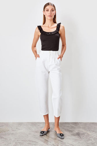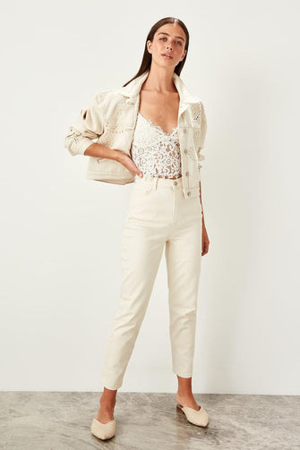 White High Waist Mom Jeans Casual Skinny Denim Pencil Pants