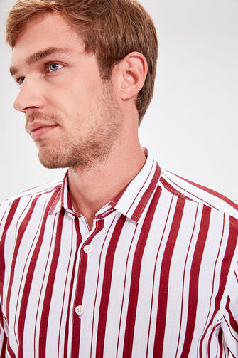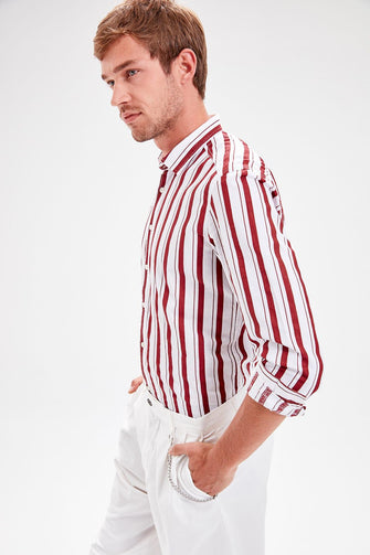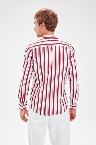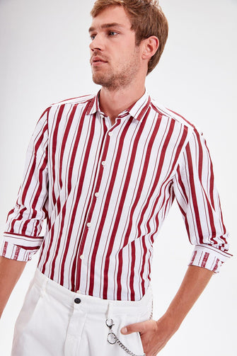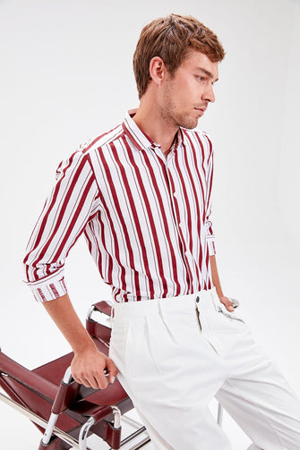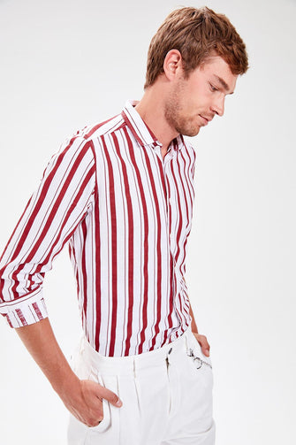 White Male Mustard Striped Long Sleeve Slim Fit Shirt New